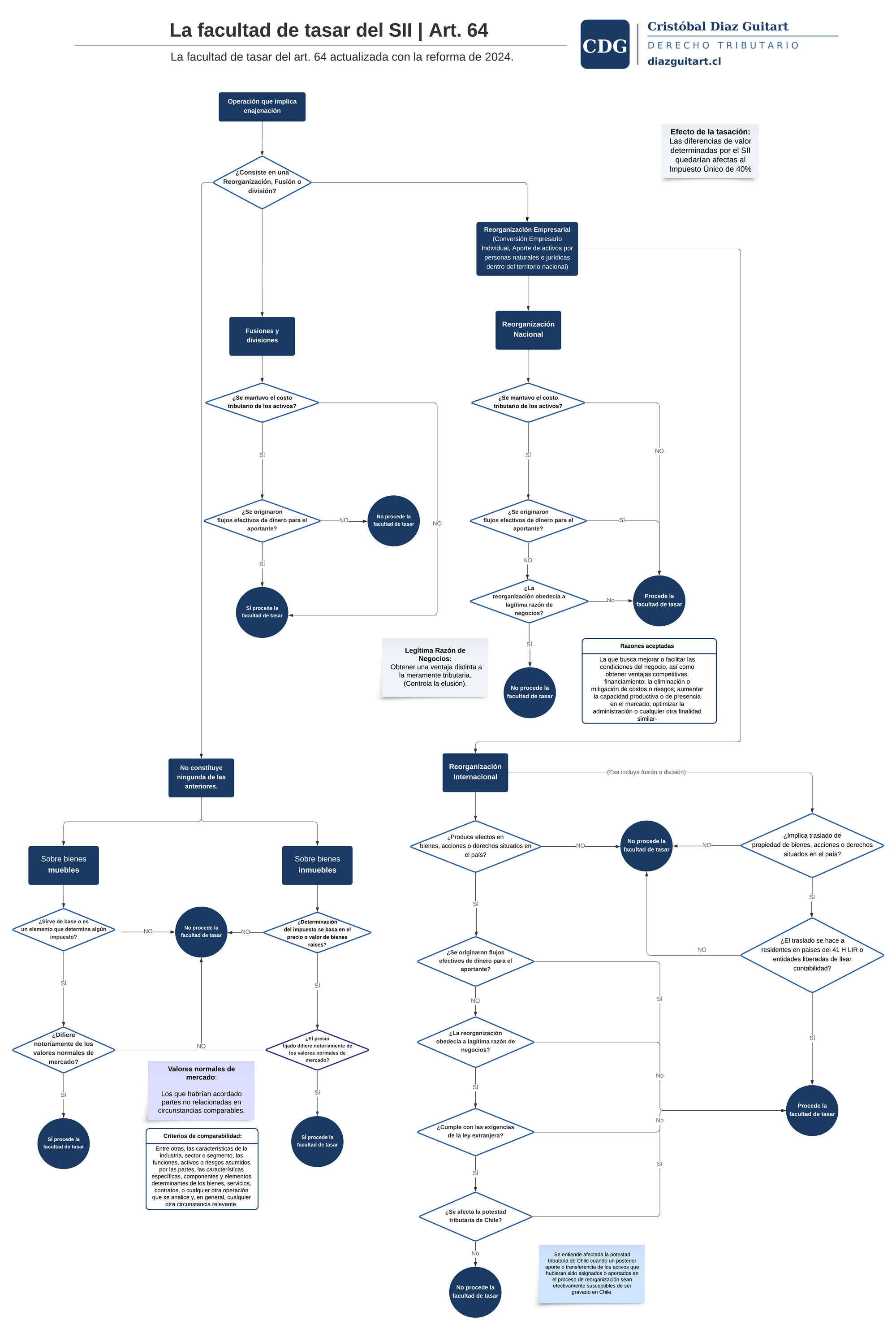 Análisis de la facultad de tasar del SII conforme al artículo 64 del Código Tributario actualizado por la Ley N°21.713, con sus criterios de aplicación en fusiones, divisiones, reorganizaciones nacionales e internacionales y el concepto de legítima razón de negocios.